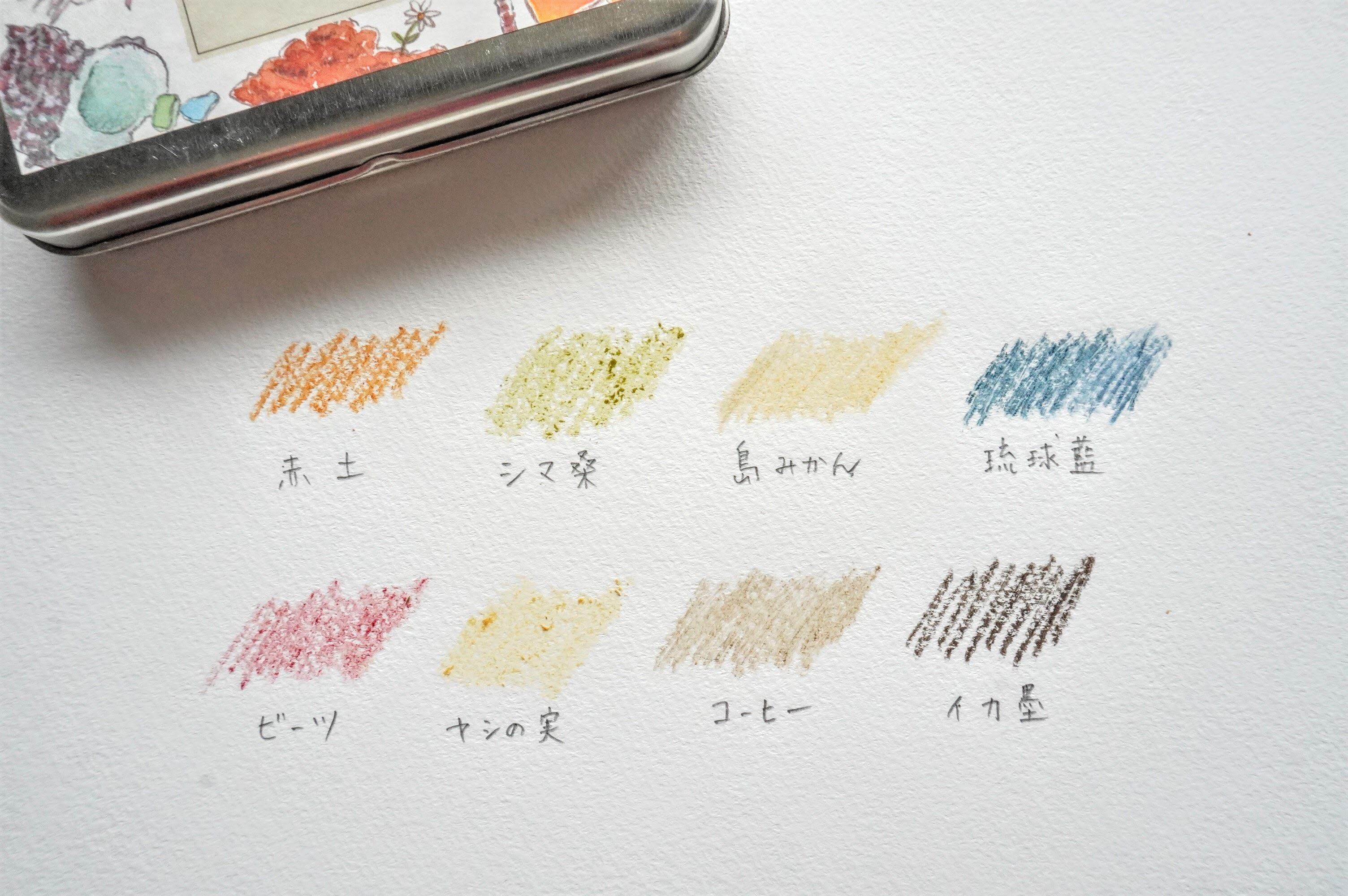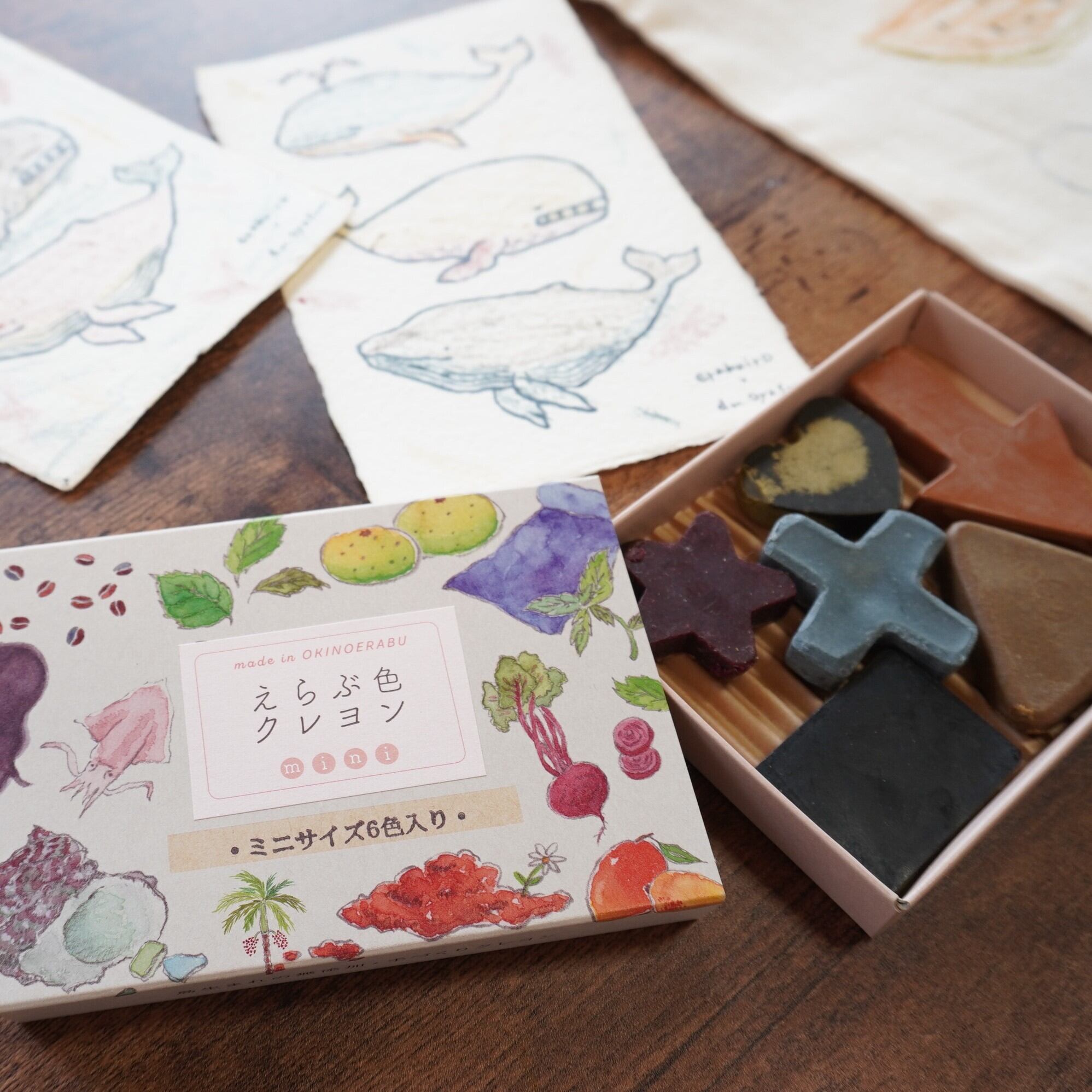 「ビーツ」(えらぶ色クレヨンmini限定の赤紫色)「赤土」「シマ桑」「島みかん」「琉球藍」「イカ墨」の全6色。
