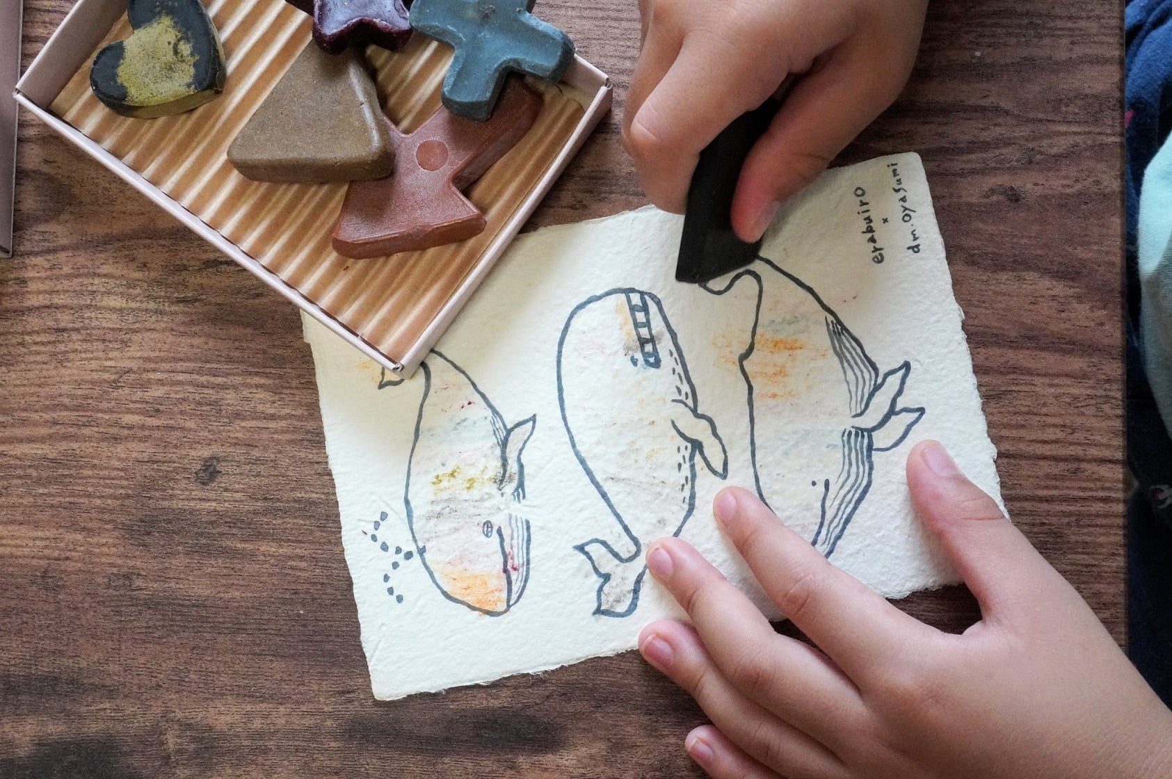 ※長期間保管しているとクレヨンの表面に白い粉が浮き出てくることがありますが、これは蜜ロウの成分です。気になる場合は布などで拭き取ってからご使用ください。